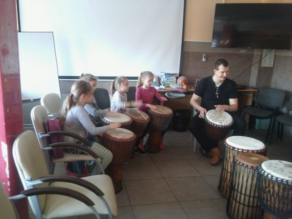 Drugi a zarazem ostatni tydzień kreatywnych ferii dobiega końca. W tym tygodniu młodzi uczestnicy, czas wolny od zajęć szkolny, spędzili w ciekawy i interesujący sposób. Były zajęcia plastyczne, mogli pograć w ciekawe gry planszowe. We wtorek dzieci uczestniczyły w zajęciach, gry na bębnach afrykańskich. Miały możliwość poznać muzykę pochodzącą z Afryki Zachodniej, graną na bębnach Djeme (dżembe). W ten sposób mogli się zetknąć, z egzotyczną kulturą tej części świata. Kolejną ciekawą atrakcją był wyjazd dzieci do Teatru im. Adama Mickiewicza w Częstochowie, na spektakl teatralny pt.”Gałganiarz i Patyczek”. Po spektaklu dzieci wzięły udział w warsztatach teatralnych. W drodze powrotnej, zatrzymaliśmy się, na posiłku w McDonaldzie.