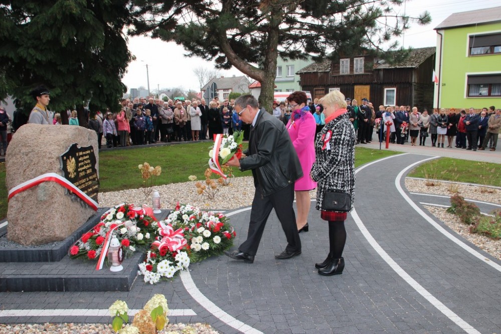 Po mszy uczestnicy przemaszerowali przed Urząd Gminy gdzie Wójt dokonał uroczystego odsłonięcia Obelisku z tablicą pamiątkową, poświęconą wszystkim mieszkańcom gminy, którzy za wolność zapłacili życiem. Po uroczystym odsłonięciu i poświęceniu delegacje złożyły wiązanki kwiatów. Przy dźwiękach marsza mieszkańcy udali się do sali OSP Czastarach, gdzie odbyła się dalsza część uroczystości. Wójt Dariusz Rejman wygłosił okolicznościowe przemówienie w którym podkreślał znaczenie niepodległości i wolności Narodu Polskiego. W części artystycznej zaprezentowała się młodzież Szkoły Podstawowej im. Bohaterów Września 1939 r. w Czastarach w montażu słowno – muzyczny. Na zakończenie Wójt Dariusz Rejman oraz Przewodniczący Rady Gminy Marek Dudka wręczonyli podziękowania ofiarodawcom oraz wszystkim którzy przyczynili się do powstania Obelisku. Wręczone zostały również nagrody Uczestnikom konkursu „Epitafium do Tablicy Pamiątkowej” który dofinansowano ze środków Narodowego Centrum Kultury w ramach programu „Kultura – Interwencje 2018 EtnoPolska” Uroczystość uświetniła swoją obecnością Orkiestra Dęta oraz poczty sztandarowe. Wszystkim zaangażowanym w organizację uroczystości serdecznie dziękujemy.