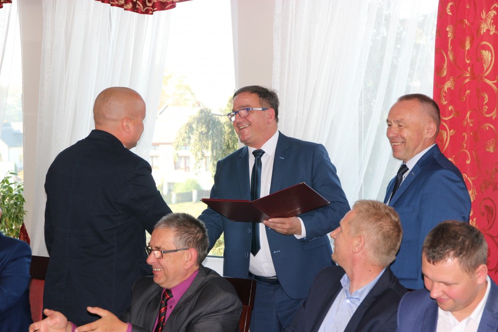 Dariusz Rejman – Wójt Gminy Czastary wraz z Przewodniczącym Rady Gminy – Markiem Dudką podziękowali Radnym i Sołtysom za czteroletnią współpracę, wręczając pamiątkowe dyplomy oraz kwiaty.