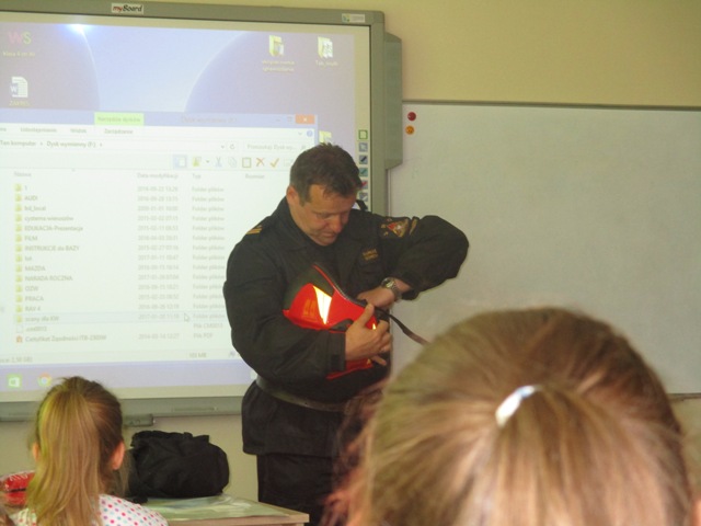 Pan Dariusz opowiedział uczniom o tym jak można zostać strażakiem