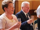 Świętowanie przebiegało w bardzo serdecznej atmosferze, a goście promienieli pogodnym nastrojem. Były gratulacje, pamiątkowe dyplomy i statuetki, kwiaty  i życzenia. Po części oficjalnej, przy tradycyjnej lampce szampana, w sympatycznej atmosferze małżonkowie podzielili się wspomnieniami i refleksjami ze wspólnie przeżytych lat. Wszystkim Parom Małżeńskim życzymy dobrego zdrowia, nieustającej pogody ducha, spokoju i młodzieńczego entuzjazmu aby odmładzani szczęściem rodzinnym mogli się cieszyć kolejnymi rocznicami. Wszystkim jubilatom serdecznie gratulujemy!